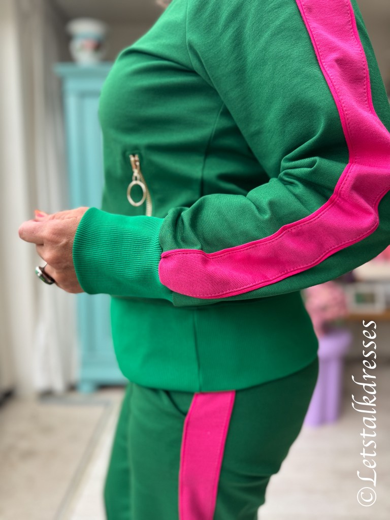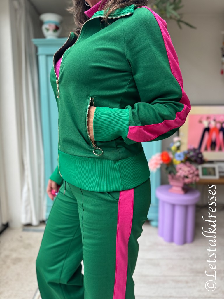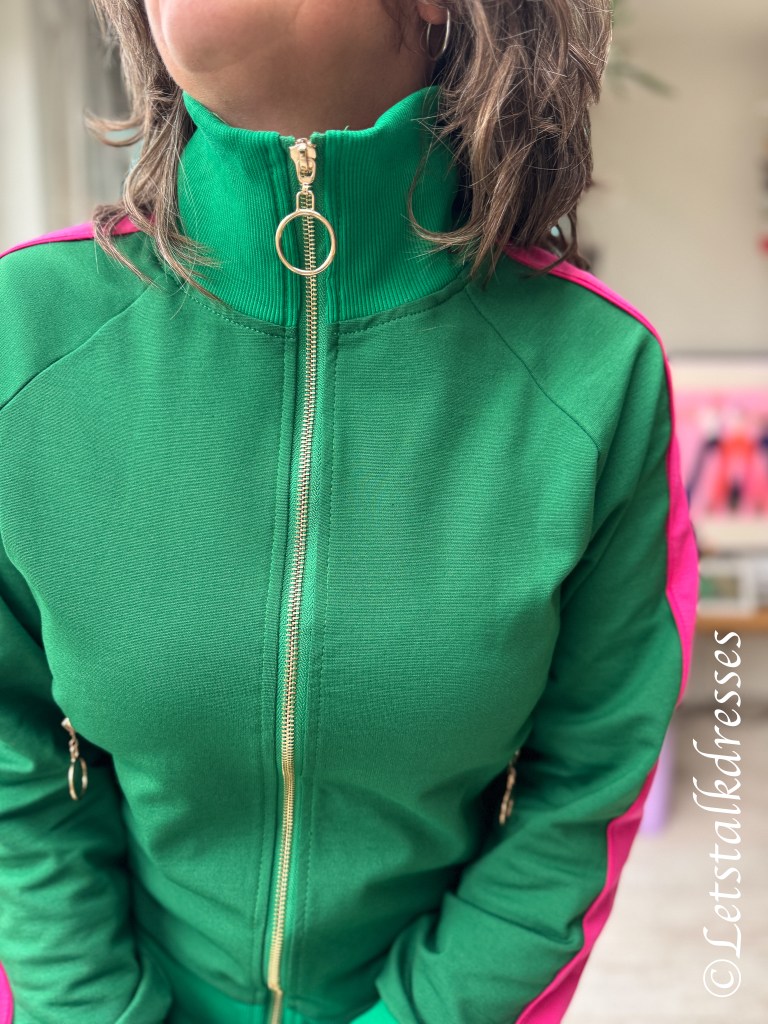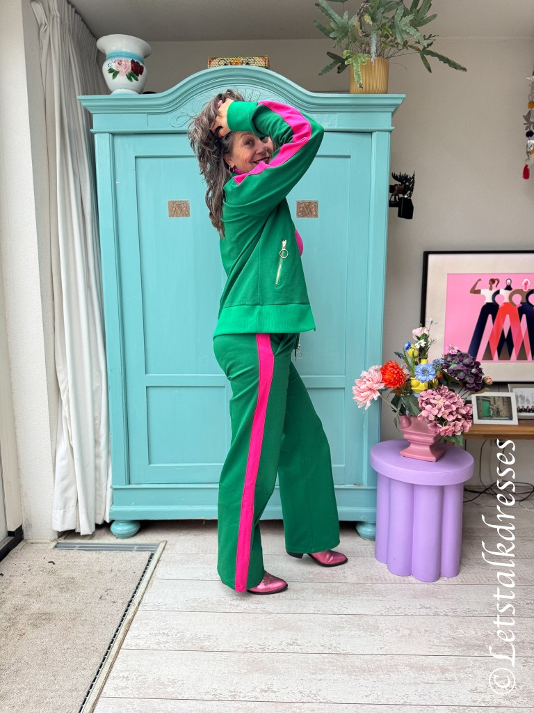 In deze blog laat ik jullie de groen/roze variant zien van de tracksuit zoals deze in november is gelanceerd door Tante Betsy! Je kan de beide items, zoals je al kan zien in de titel, los van elkaar kopen. Ik heb het complete pak gekozen. Ik zal hem ook als 1 geheel beschrijven. De tracksuits komen dus in 4 kleurcombinaties: Black/Pink, Berry/Pink, Petrol/Pink en Green/Pink.